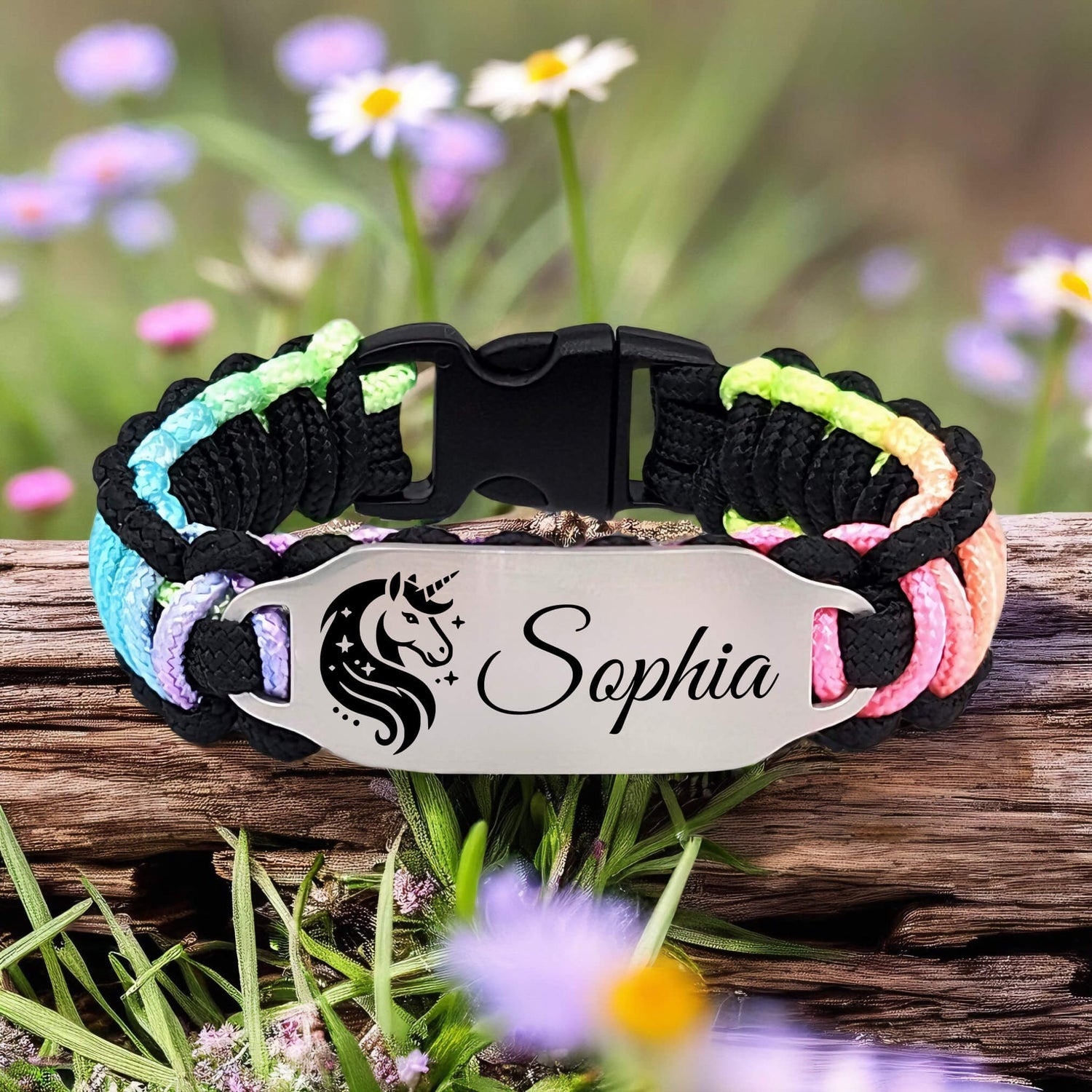 Custom 275 Paracord Bracelet with Engraved Name on Stainless Steel ID Tag – Great for Kids or Adults
