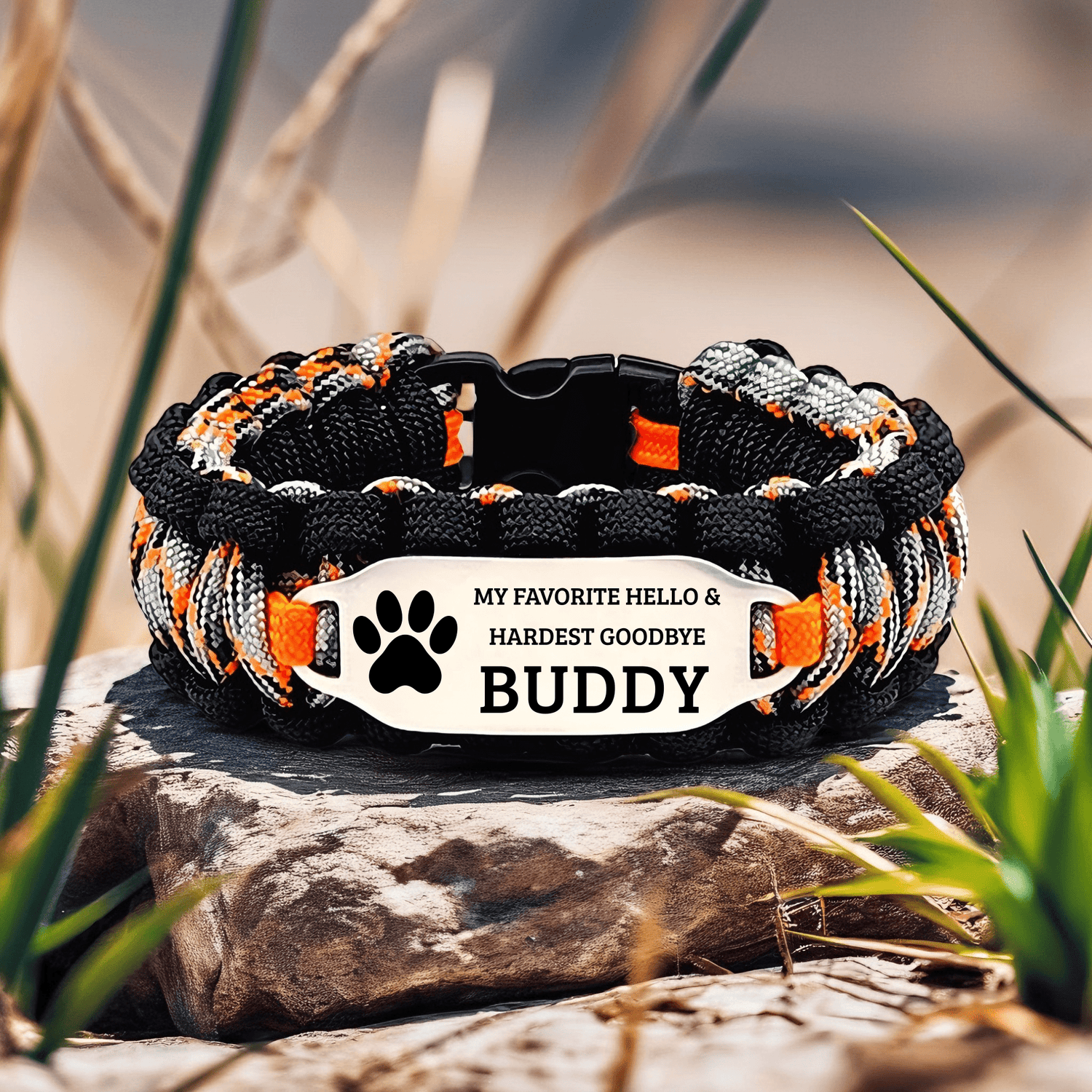 Custom Engraved Pet Memorial 550 Paracord Bracelet with Stainless Steel ID Tag