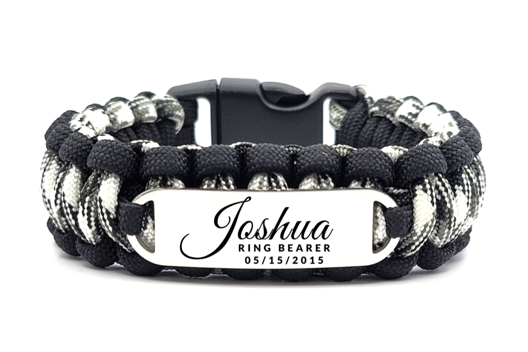 Ring Bearer 550 Paracord Bracelet with Custom Engraved Stainless Steel ID Tag
