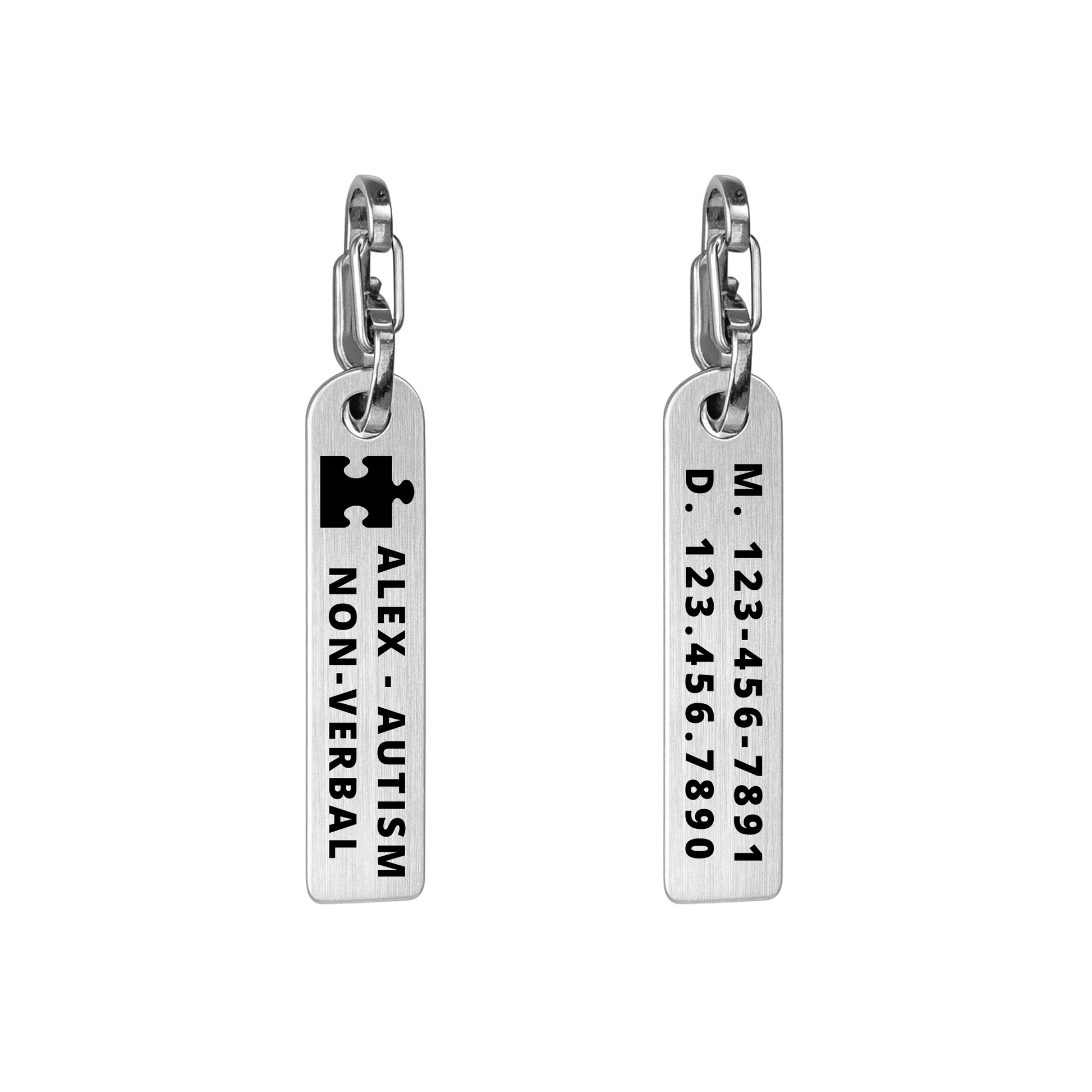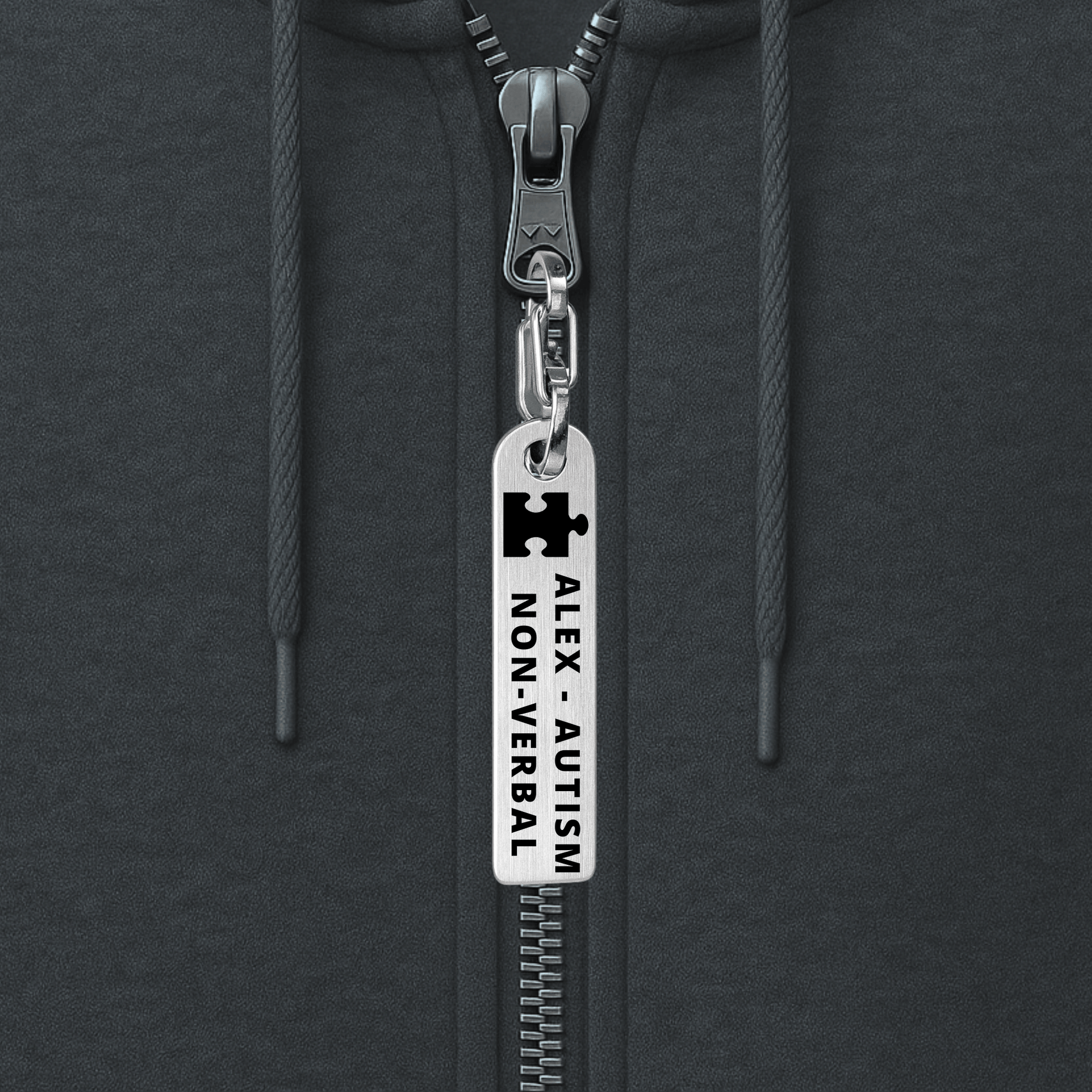 Custom Engraved Stainless Steel Zipper Pull – Medical Alert & Autism ID Tag